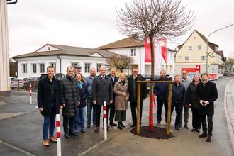Vor der Sparkasse in Küps wurde allerdings kein Obstbaum gepflanzt, sondern aufgrund der Historie ein Kugel-Ahorn, nachdem es hier in der Bahnhofstraße - erläuterte der Erste Bürgermeister der Marktgemeinde Küps, Bernd Rebhan - schon seit jeher eben diese Bäume gegeben habe. Mit der Neupflanzung ersetze man ebenfalls einen Kugel-Ahorn, der zuletzt leider marode war. Sein Dank galt in diesem Zusammenhang gerade auch seinem tüchtigen Bauhof für die Pflanzarbeiten, die man lieber in fachmännische Hände gegeben habe.
