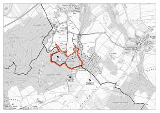 Abb. 1: Lageplan des Bebauungsplans „Windpark Burgkunstadt-Küps Sondergebiet Küps“, ohne Maßstab (Kartengrundlage Geobasisdaten © Bayerische Vermessungsverwaltung 2023)
