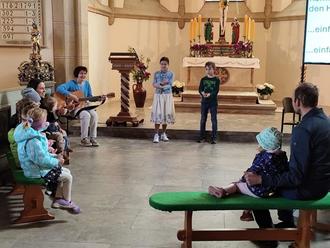 Mit den Kleinsten einfach den Glauben feiern – das ist das Motto der „Flaumi-Gottesdienste“, die jetzt in der Jakobi-Kirche in Küps mit einem Team aus engagierten Müttern rund um Religionspädagogin Susanne Pickel gestartet wurden. Und es war gleich richtig viel Schwung drin. Die Fledermaus „Flaumi“, die im Kirchturm wohnt, hatte richtig Angst. Plötzlich war die Mama weg. Mit der Angst-Geschichte von der Sturmstillung aus dem Markusevangelium durfte nicht nur Flaumi, sondern viele Kleine und Große erfahren, dass Jesus uns in der Angst zur Seite steht. In einfachen Worten und mit grundlegenden Elementen, klaren Liedern mit viel Bewegung konnten auch die Jüngsten die gute Botschaft und die Geborgenheit des Glaubens aufnehmen und erspüren. Das hat auch dem Team, das den Gottesdienst liebevoll und detailreich vorbereitet und durchgeführt hat, sehr gut gefallen. Da wird es Fortsetzungen geben. „Das tut uns und unseren Kindern einfach gut“, lautet das Feedback unmittelbar nach dem Gottesdienst, der zur familienfreundlichen Zeit um 11 Uhr begann. Und dass der Kirchenraum schon die Kleinsten fasziniert, zeigten die großen, neugierigen Kinderaugen. Spannend, was „Flaumi“-Fledermaus demnächst den Kindern zeigen will…
