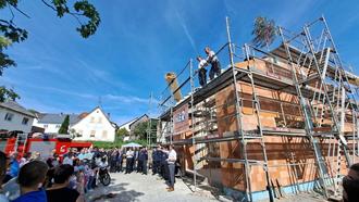 Richtfest für die Erweiterung des Feuerwehrhauses in Schmölz. Der Markt Küps investiert mehr als 600 000 Euro in das Gebäude und wird auch ein neues Löschfahrzeug anschaffen. Gemeinsam mit der Bevölkerung feierte Bürgermeister Bernd Rebhan jetzt Richtfest.