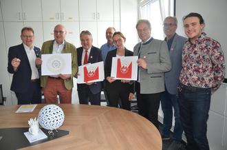 Bei der Vorstellung einer neuen Werbekampagne von „Bierland Oberfranken“. Sie sind nicht nur auf den Geschmack gekommen, sondern finden es lohnenswert für die Bierkultur und Biervielfalt der Genussregion zu werben. Von links Bürgermeister Bernd Rebhan, Ideengeber Roland Rauh, Landrat Klaus Peter Söllner, Florian Rauh, Christel Rauh (Geschäftsführung Rauh-Gruppe, Küps), Landrat Klaus Löffler, Dr. Bernd Sauer (Handwerkskammer für Oberfranken Bayreuth, Vorstandsmitglied Bierland Oberfranken), Joshua Pilarzyk (Geschäftsführer Brauerei Grosch, Rödental)