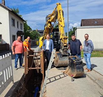 Bei einer Baustellenbesichtigung überzeugten sich vom Arbeitsfortgang von links: Bauhofleiter Jürgen Ludwig, Dipl.-Ingenieur Markus Möckel (SRP), Bürgermeister Bernd Rebhan, Bauamtsleiter Christian Ebertsch und Bautechniker Michael Stadler