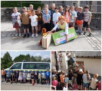 Im Juli besuchte uns Herr Schramm von der Polizei die Vorschulkinder. Gemeinsam mit den Kindern legte er einen Zebrastreifen und übte, dass richtige überqueren der Straße. Für einen sicheren Weg zur Schule, zeigte er uns das richtige Verhalten im Straßenverkehr. Alle durften sich einmal in den Polizeibus setzten und zum Schluss schaltete Herr Schramm das Blaulicht für uns an und überreichte allen Kindern ein Polizeiheft.