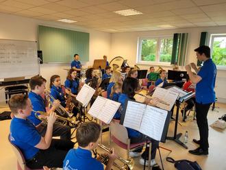 Doch damit war der Nachmittag keineswegs zu Ende. Jetzt wurde es wild. Zahlreiche Eltern hatten sich mit ihren Kindern eingefunden, Instrumente auszuprobieren und sich über die Unterrichtsmöglichkeit an der Musikschule für das nächste Schuljahr zu informieren. Im ersten Stock des Probenheims hatte man sich für die Instrumentensafari vorbereitet. Alle Instrumente des Blasorchesters, von der Oboe bis zur Tuba, waren aufgebaut und die Ausbilder standen mit Rat und Tat bereit, damit jedes Kind den Instrumenten einen Ton entlocken konnte. Die Kinder machten davon regen Gebrauch und so tönte es nicht schlecht durch die Küpser Straßen rund um das Probenheim. Der Förderverein für die Küpser Orchester e. V. lud die Eltern zu Kaffee und Kuchen ein, die dabei das „tierische Treiben“ verfolgen konnten.