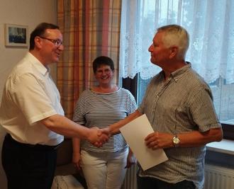 v.l. Diözesanpräses DK Albert Müller, 1. Vorsitzende Yvonne Wietasch, Geehrter Klaus Müller