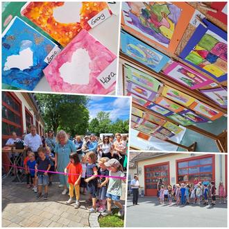 Am Rathaus in Küps fand im Rahmen des Grünen Marktes eine Vernissage zur Eröffnung der Kinderkunst- Ausstellung des ev. Kindergartens St. Jakobi Strolche statt.