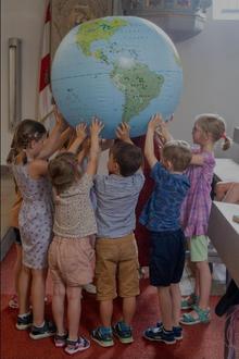 Alle, Groß und Klein, sangen und klatschten mit, während die Kinder unsere neu erworbene, aufblasbare riesige Erdkugel sanft und vorsichtig hoch über ihren Köpfen balancierten und drehten.