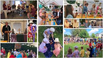 Nach den Corona-Bedingten Ausfällen hat sich auch die evangelische Kirchengemeinde wieder in bewährter Weise an ein großes Gemeindefest gewagt. Zusammen mit den beiden Kindertagesstätten „Jakobi-Strolche“ und „Spatzennest“, die momentan beide um das Pfarrhaus herum ihren „Sitz“ haben, wurde bei strahlendem Sonnenschein gefeiert. Auftakt bildete der Zelt-Gottesdienst, der vom Posaunenchor unter Leitung von Sabine Müller musikalisch begleitet wurde. Danach gab es reichlich zu Essen und zu Trinken, die „Mauerfalken“ boten Cocktails und die „Kirchenmäuse“ Spiele an. Die Frauen des Frauenkreises um Monika Fischer sorgten für den Verkauf der zahlreich gespendeten Kuchen. Am Nachmittag hatten dann die Kinder aus dem Spatzennest und die Jakobistrolche jeweils ihren großen Auftritt auf der Gartenbühne neben dem Luthersaal. Was Farben alles können und die getanzte Begeisterung für Vielflalt und Fußball standen dabei im Mittelpunkt. Viele sind zusammengekommen, und viele haben mit angepackt, dass ein so großes und schönes Fest rund ums Pfarrhaus in Küps stattfinden konnte. Vielen Dank allen Besucherinnen und Besuchern und an alle fleißigen Helferinnen und Helfer vor, während und nach dem Fest.