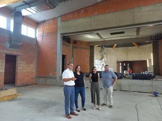 Bei der Besichtigung der schon fast fertigen Sport- und Kulturhalle – von links: Bürgermeister Bernd Rebhan, Ulrike Maier von der Regierung von Oberfranken, Nicola Völkel vom Gemeindeumbaumanagement sowie Bauamtsleiter Christian Ebertsch