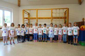 Die Vorschulkinder kamen am Abend mit ihrem Gepäck, ganz aufgeregt wieder in den Kindergarten. Dort wartete eine Nachricht vom kleinen Gespenst, das unsere Hilfe benötigte. Nach erfolgreicher Schatzsuche mit vielen Aufgaben durch ganz Johannisthal, stärkten wir uns beim gemeinsamen Abendessen. Am nächsten Morgen nach unserem Frühstück kamen alle Eltern zur Abschiedsfeier. Dabei sangen alle Kinder in ihren Kindergarten T-Shirts ihr Lieblingslied aus der Vorschule und wir tanzten gemeinsam zu „Bella Ciao, Es ist Zeit Tschüss zu sagen“. Zum Schluss überreichten wir unseren Vorschulkindern ihre Ordner, ihre eigenen Faltkalender und als Überraschung einen Stundenplan für die Schule. Am Ende übergaben uns die Eltern ein großes Geschenk, mit einem Teppich darin, mit der Aufschrift „Wir hüpfen weiter“ und allen Namen der Kinder. Dazu gab es noch einen Gutschein und dafür möchten wir uns noch einmal herzlich bedanken.