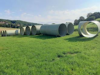Die großen Röhren, die von der Ortsumgehung Schmölz aus im Vorbeifahren zu sehen sind, lassen den Umfang der Baumaßnahme des Abwasserverbandes Kronach-Süd derzeit erkennen. Das bestehende Pumpwerk wird aktuell erneuert und zusätzliches Rückstauvolumen geschaffen.