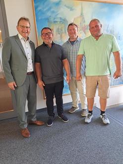 Bürgermeister Bernd Rebhan freute sich, zusammen mit Bauamtsleiter Christian Ebertsch und Bauhofleiter Jürgen Ludwig, über den Neuzugang aus Johannisthal.