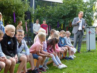 Bürgermeister Bernd Rebhan ließ es sich nicht nehmen, die kleinen „Tiger“ persönlich zu begrüßen, wünschte den Kleinen einen supertollen Schulstart und eine spannende Schulzeit.