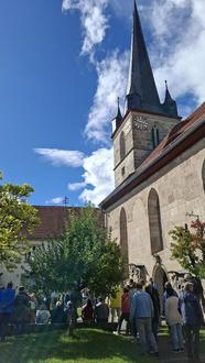 Am Schloss vorbei ging es anschließend um das Wirtschaftsgebäude herum hinüber zur Kirche St. Laurentius. Die Patronatskirchen der Ritterschaft im Süden des Landkreises Kronach zählen zu den besonderen Schätzen in der reichen Kulturlandschaft Frankens.