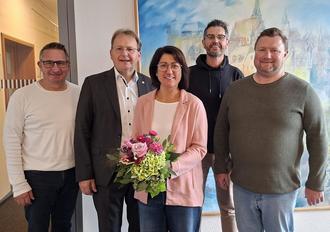 Herzlich willkommen Susanne Vogel! Glückwünsche gab es von Bürgermeister Bernd Rebhan und Geschäftsleiter Torsten Michel. Auch Bauamtsleiter Christian Ebertsch und Kämmerer Horst Sünkel schlossen sich den guten Wünschen an.