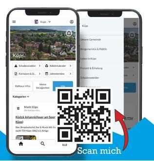 Dabei bietet die kostenlose APP alles auf einen Klick: Neuigkeiten und Eilmeldungen aus dem Rathaus, Veranstaltungen und Neuigkeiten der Vereine, die Öffnungszeiten gemeindlicher Einrichtungen, Online-Dienstleistungen, einen Schadensmelder und vieles mehr. Durch den Erhalt von Push-Nachrichten sind die Nutzer immer tagesaktuell in Echtzeit über alle Küpser Neuigkeiten informiert. Dabei bestimmen die Nutzer selbst, aus welchen Bereichen sie Informationen erhalten möchten.