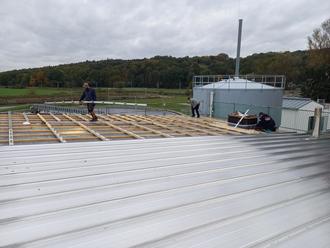 Das neue Steildach auf dem Betriebsgebäude des AWV Kronach-Süd ist nunmehr mit Metallklemmprofilbahnen abgedichtet.
