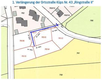 Im Zuge der Erschließung des Baugebietes „südlich Ringstraße“ wurde die Ortstraße 43 „Ringstraße II“ verlängert. Die Verlängerung besteht aus der Flur-Nr. 761/1 und einer Teilfläche von 746.