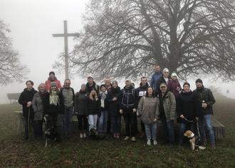 Die Abteilung „Wandern“ machte sich auf zur Herbstwanderung. Die Wanderroute startete in Dittersbrunn am Wanderparkplatz. 22 Wanderlustige, sowie drei Hunde, marschierten den Keltenweg E zur Schutzhütte am Dornig und weiter Richtung „Küpser Linde“. Aus diesem magischen Ort, mit normalerweise guter Fernsicht, wurde ein Grau in Grau. Nach einer kurzen Rast ging es weiter Richtung heimwärts auf einem Höhenweg. Normalerweise hätte man da einen guten Blick auf die St. Veitskirche und den Ansberg gehabt, welchen man im Anschluss erwanderte. Jedoch war auch hier dichter Nebel, was aber der guten Laune keinen Abbruch tat. Den Tag ließ man im Gasthaus Hummel in Prächting bei gutem Essen ausklingen. Die Strecke betrug etwa 7,5 km, die man in gut zwei Stunden erwanderte.