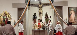 Am Ende der Eucharistiefeier bedankte er sich noch bei seinem Mitbruder Pfarrer Otmar Klein für das Mitwirken und den Ministranten Moritz, Sophie Weinmann, sowie bei Lotta Rebhan und Organist Stefan Mück.