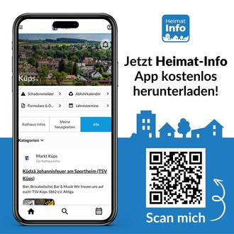 Die App „Heimat-Info“ kann über den QR-Code im Mitteilungsblatt oder in den App Stores für iPhones und Android-Smartphones kostenlos heruntergeladen werden. Weitere Informationen gibt es auf www.heimat-info.de.