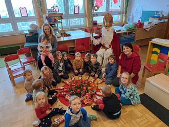 Die Kinder schrieben eine Einladung an den Nikolaus und wir waren alle hocherfreut, als am 6.12. uns der Heilige tatsächlich im Kindergarten besuchte. Der gute Mann hat manch Geheimnis der Kinder gewusst und ihre Stärken in liebevolle Sätze verpackt. Dann verteilte er an die Kinder je einen Schokoladenbischoffnikolaus und einen Sack mit Nüssen, Süßigkeiten, Äpfel und ein Bilderbuch.