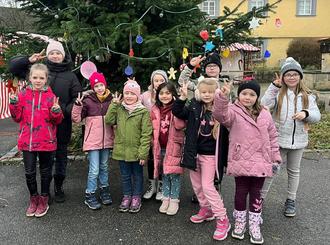 Die Kinder der OGTS Küps haben es sich zur Aufgabe gemacht, den Weihnachtsbaum "Am Plan" vor dem Neuen Schloß in Küps zu schmücken. So wurden liebevoll viele weihnachtliche Anhänger gestaltet und anschließend zusammen aufgehängt.