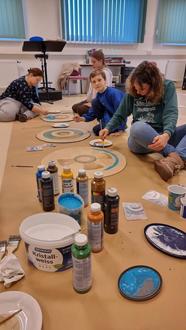 Das Kreativteam unter Leitung von Lisa Gratzke und Claudia Weidmann tüftelt seit Wochen am Bühnenbild und wird wieder die Turn- und Festhalle Küps in einen fantastischen Konzertsaal verwandeln. Die eifrigen Künstlerinnen und Künstler haben zusätzlich zur musikalischen Vorbereitung auf die Konzerte viele Wochenenden mit Farbe und Pinsel im Probenheim verbracht.