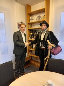 Auf seiner Walz machte der Wandergeselle Leon Pluschke kurzen Halt im Küpser Rathaus. Drei Jahre und einen Tag ist der 27-Jährige, aus Berlin stammende junge Mann insgesamt auf Wanderschaft und folgt dabei einem jahrhundertealten Ritual.
