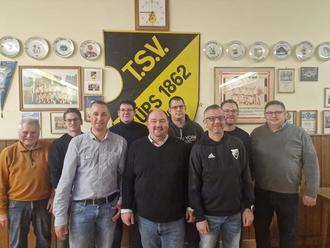 Die neue Vorstandschaft des TSV Küps; vordere Reihe v. l.: stellv. Vorsitzender Markus Kraus, Vorsitzender Alexander Kestel, stellv. Vorsitzender Frank Göppner. hintere Reihe v. l. Beisitzer Walter Karl und Alexander Frech, Kassier Johannes Hacker, ehem. Vorsitzender Andre Wich, Schriftführer Torsten Hannweber, 2. Bürgermeister Thomas Meyer