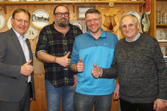 Sie alle stehen zur Harmonie, v.l. Bürgermeister Bernd Rebhan, 2. Vorsitzender Stefan Weinmann, 1. Vorsitzender Wolfgang Hüttner und abgelöster 1. Vorsitzender Helmut Martin.