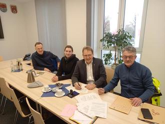 Das Foto zeigt Bürgermeister Bernd Rebhan und den Verantwortlichen des Amtes für Ländliche Entwicklung (von links): Thomas Kühnlein, Michaela Kist und Joachim Heusinger.