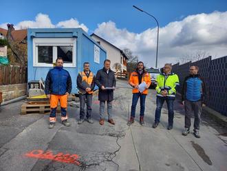 Baustart am Mühlberg für die neue Wasserleitung (von links): Marko Stahl (Firma Heil), Khaled Alhennawi (Büro SRP), Bürgermeister Bernd Rebhan, Markus Möckel (Büro SRP), Jürgen Eichner (Firma Heil) und Michael Stadler (Markt Küps)