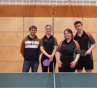 von links: Jugendtrainer und Betreuer Doninik Heinlein, Juli Scheler, Sophie Rühr und Christopher Scheler.