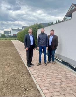 Eine sichere Fußwegverbindung steht im Bereich zwischen den Baugebieten Melm I und Melm II nunmehr zur Verfügung (von links): Bürgermeister Bernd Rebhan, Geschäftsführer Peter Heinz von der Firma Mühlherr und Bauamtsleiter Christian Ebertsch.