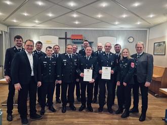 Neben der hohen Auszeichnung der beiden Wehrmänner, konnten noch weitere Floriansjünger ausgezeichnet bzw. befördert werden. Dies waren: Jette Fugmann zur Feuerwehrfrau, Nikolai Hiesl zum Oberfeuerwehrmann, Johannes Hiesl zum Hauptfeuerwehrmann und Alexander Stegner zum Hauptlöschmeister. Kreisbrandrat Frank Fischer durfte im Namen des Kreisfeuerwehrverbands Sebastian Kolb mit dem Ehrenkreuz in Silber auszeichnen und dankte ihn für seine Zeit als Kommandant und freut sich nun auf die gemeinsame Zusammenarbeit in der Kreisbrandinspektion, da Kolb Anfang 2023 zum Kreisbrandmeister berufen wurde.