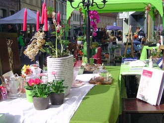 In den Geschäftsstraßen und auf dem Marktplatz präsentiert sich der Frühjahrsmarkt mit rund fünfzig Marktständen, Kunsthandwerk, Waren des täglichen Gebrauchs, Photovoltaik und vieles mehr.