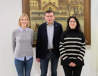 v.l.n.r. Bianca Röder, Erster Bürgermeister Armin Warmuth, Sarah Ayoub