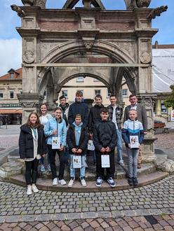Im Anschluss stand dann noch ein kurzer Fototermin mit Lorena Romanczyk (Ausbildungsleitung), den Azubis der Verwaltung und dem 1. Bürgermeister Armin Warmuth auf der Tagesordnung, wobei ein kleines Dankeschön an die Teilnehmenden überreicht wurde. Die Stadt Hammelburg wünscht den Jugendlichen alles Gute für Ihre Zukunft und hofft darauf, bekannte Gesichter wieder zu sehen.