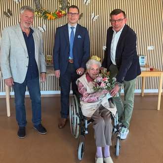 Mit beeindruckenden 103 Jahren feierte Gertrud Kurz am vergangenen Sonntag ihren Geburtstag – und ist damit die älteste Bürgerin der Stadt Hammelburg. Im Kreis von Mitbewohnern, Pflegepersonal und Familie wurde ihr Ehrentag im Maria-Probst-Heim gebührend gefeiert. Die Stadt Hammelburg gratulierte der Jubilarin mit einem Blumenstrauß und einem persönlichen Grußwort von Bürgermeister Armin Warmuth, „Frau Kurz ist ein lebendiges Stück Stadtgeschichte!“
