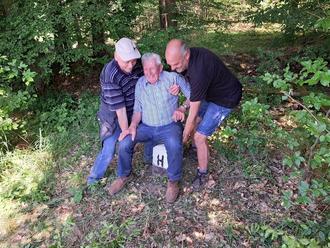 Zur Mittagsrast an der Jagdhütte Stolz wurden die Grenzgänger durch die Jugendfeuerwehr mit Gulaschsuppe verpflegt. Am Dreimärker Untererthal-Hetzlos-Obererthal, war dann der große Moment für den ehemaligen Obmann Karl Heilmann gekommen. Nach 67- jähriger Tätigkeit als Feldgeschworener, wurde dieser nun zum allerersten Mal, von seinen Kollegen selbst „gestaucht“.