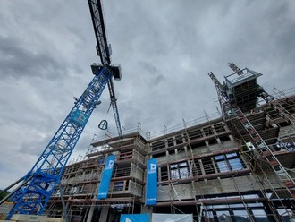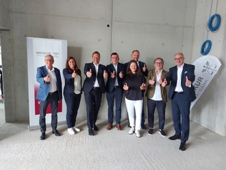 Nach dem Spatenstich im Januar konnte nun am 02.08.2024 bereits das Richtfest der MERKUR PRIVATBANK gefeiert werden. Dort werden bald 170 Mitarbeiter/innen ihren Arbeitsplatz finden. Mit 11 Mio. Euro ist die Baumaßnahme, die nach höchsten energetischen Standards errichtet wird, veranschlagt. Im Frühjahr 2025 soll die Fertigstellung erfolgt sein.
