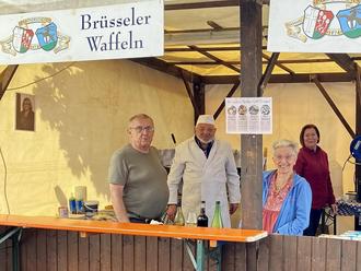 Der Stand der Turnhouter wird wieder direkt gegenüber dem Rathaus stehen. Im Angebot sind frische belgische Waffeln, Pralinen aus der Schokoladenmanufaktur Leonidas, Klosterkäse und belgisches Bier.