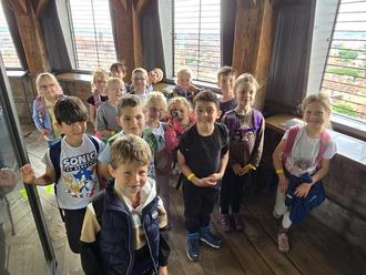 Die aufmerksamen und cleveren Vorschulkinder unserer Kita fanden natürlich die Hufabdrücke des Pferdes. Ebenso nahmen wir an einer Führung teil und erklommen gemeinsam den „Sinwellturm“, den höchsten Turm der Burg.