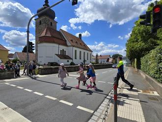 Gemeinsam lernten die Kinder unter Herrn Fleischmanns wachsamen Augen die Ampel richtig zu benutzen, die Hauptstraße alleine sicher zu überqueren und auch worauf man achten muss, wenn man an einer Ein- bzw. Ausfahrt auf einem privaten Grundstück vorbeikommt.