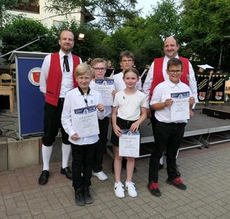 Um die Leistung unserer Jüngsten im Musikverein auch entsprechend zu würdigen, wurden im Anschluss fünf Abzeichen ausgehändigt. Jonathan Erlwein (Klarinette), Leonie Eger (Klarinette), Hendrik Kollert (Klarinette) erhielten erstmalig das neue Newcomer-Abzeichen, Jonathan Wier (Querflöte) und Florian Walz (Querflöte) rücken mit dem Juniorabzeichen in das Schülerorchester auf.