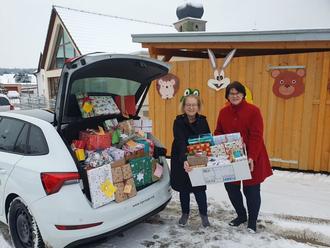 Kurz vor Weihnachten wurde so ein ganzes Auto voller Geschenke von Frau Dr. Chara Gravou-Apostolatou und Frau Karin Büttner (v.l.) an der Kita in Empfang genommen - insgesamt haben 70 erfüllte Herzenswünsche auf diesem Weg vielen Kindern ein Lächeln auf die Lippen gezaubert.