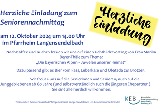 Wir beginnen am Samstag, 12. Oktober 2024 um 14 Uhr mit dem ersten Seniorennachmittag nach der Sommerpause.