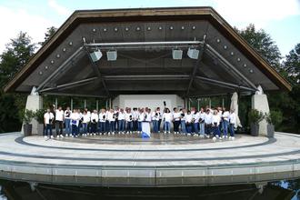 Anschließend gesellten sich die Damen zum gemischten Chor, und der Kurpark wurde zur Bühne für ein buntes Potpourri moderner Chormusik. Mit Einer von 80 Millionen, Expresso und Tschianti, Lollipop, Mamma Mia, Marmor, Stein und Eisen und Only You wurde das Publikum mitgerissen. Den Wünschen der Zuhörer folgend brachte der Gesangverein Cäcilia unter der Leitung von Jochen Sitzmann die Seebühne schließlich mit Wackelkontakt zum Beben.