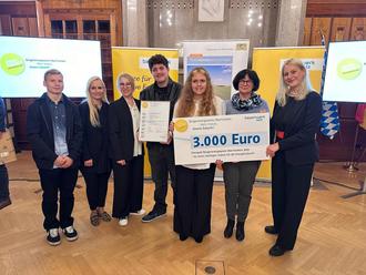 Die Mittelschule Baiersdorf erhielt 3000 Euro für ihr BNE-Engagement, eine Urkunde und ein Schild für das Schulhaus, das sowohl im Container-Schulgebäude als auch später im renovierten Schulhaus einen Ehrenplatz bekommen wird.